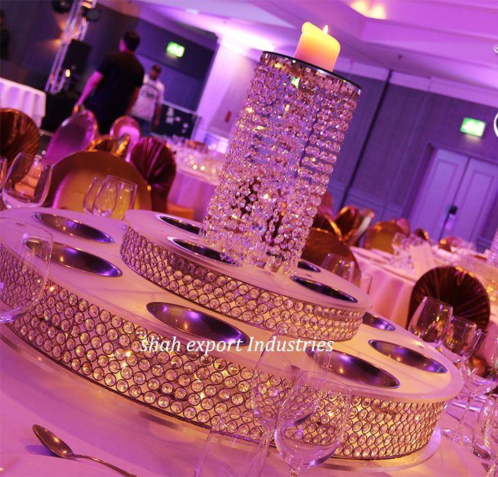 Luxury Wedding Tabletop Decoration Catering Crystal Lazy Susan Centerpiece 2 Tier With 8 Food Bowls Handicrafts