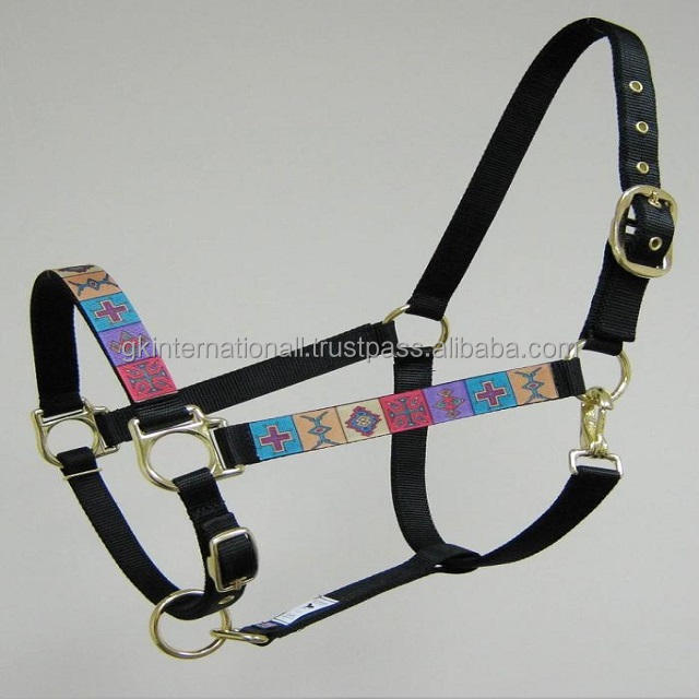 Luxury Western Design Vibrant Colors Double Layer Nylon Horse Halter with Block Design Sewn & Heavy Duty Brass Buckle & Rings