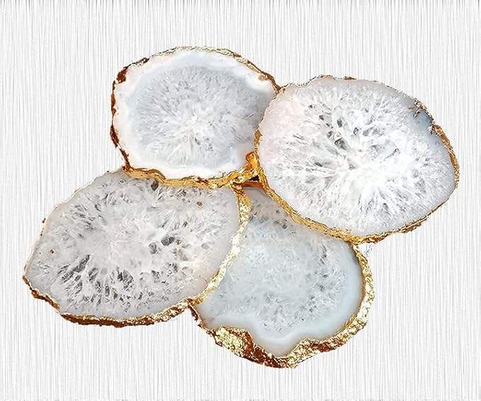 Luxury White Agate Semi-Precious Gemstone Coasters - Natural Crystal Rock Tableware for Weddings and Special Events