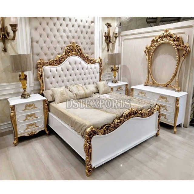 Product name:Luxury White & Gold Carved Bedroom Furniture Set