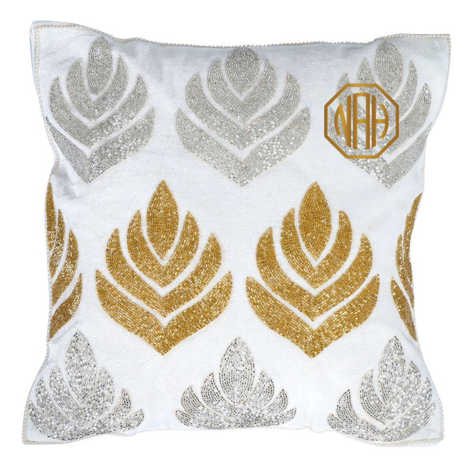 Luxury White & Grey Silk Cushion Cover Floral Embellishment Sofa Pillow Case Wholesale Manufacturer Custom Bulk Export Ready