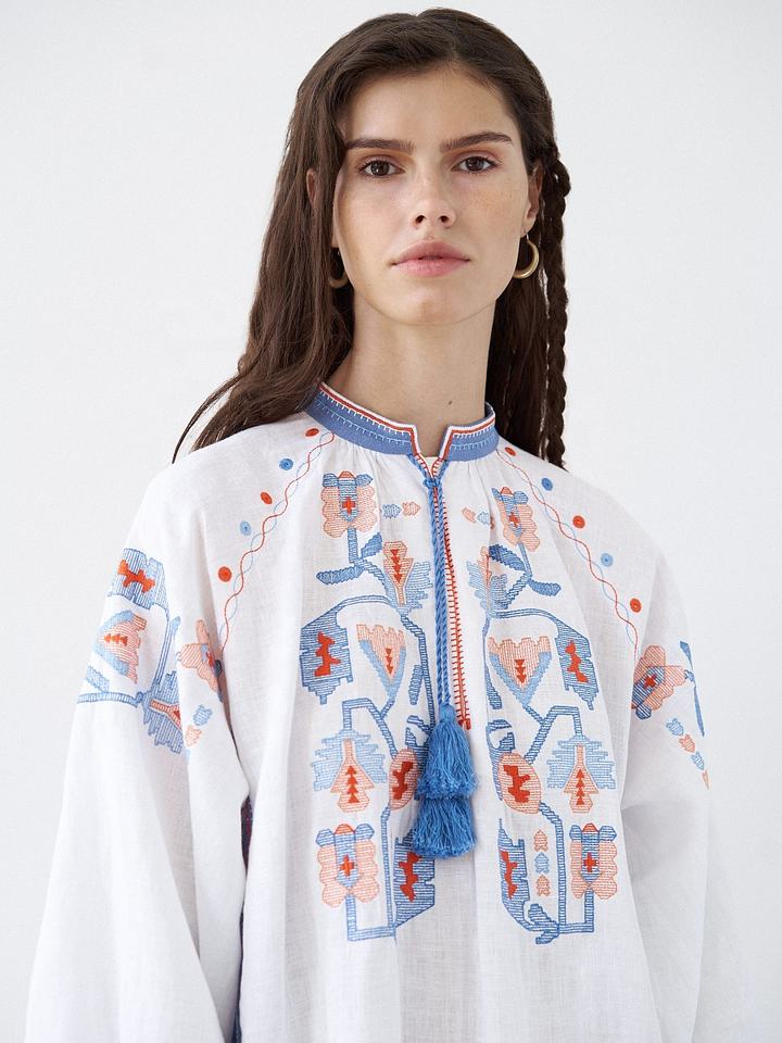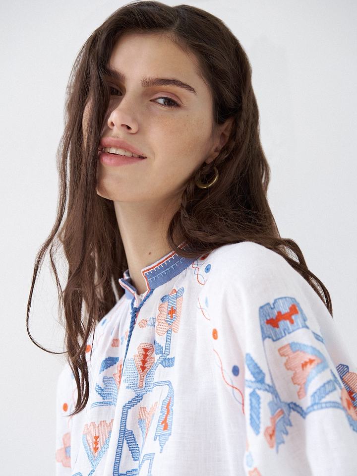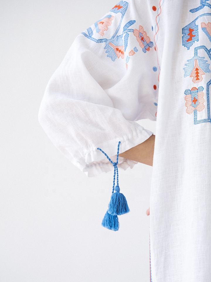 Luxury White Linen Fabric Dress for Women/Girls Adults Casual Cotton Dress Beautiful 3D Pattern Embroidery Zipper Sexy Style