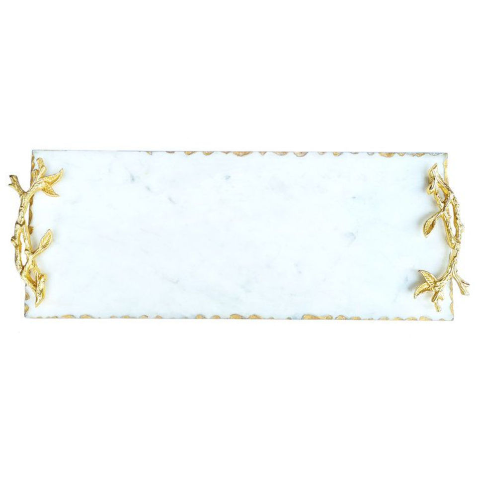 Luxury White Marble Serving Tray with Elegant Gold Leaf Handles Handcrafted Decorative Tray for Wedding Coffee Table Home Decor