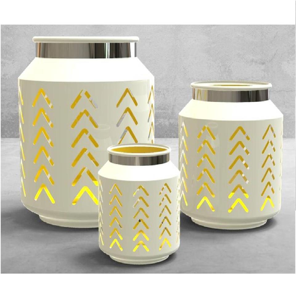 Luxury White Metal Candle Lantern with Handle Gold Interior Decorative Hanging & Tabletop Lantern.