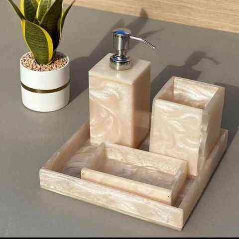 Luxury White Resin Bathroom Accessories Set Contemporary Rectangle Design Easy to Clean Four-Piece Set