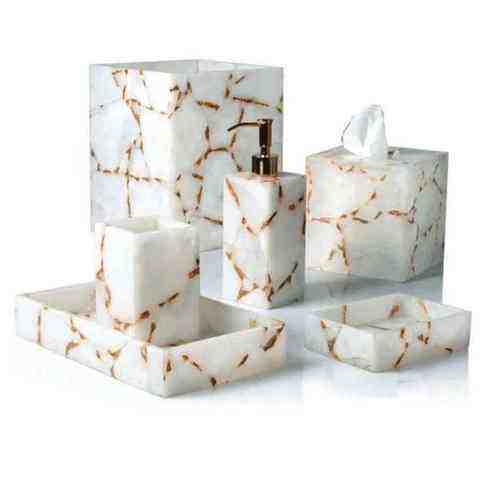 Luxury White Resin Bathroom Accessories Set Easy to Clean Modern Rectangular Design for Homes and Hotels