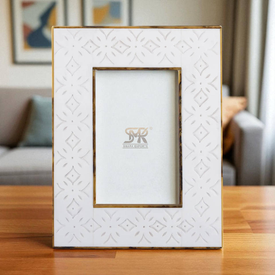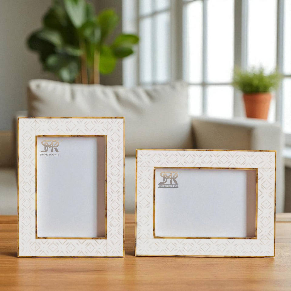 Luxury Handmade White Resin Bone Inlay Photo Frame with Unique Rhythm Cycle Design Creative Contemporary Room Decoration
