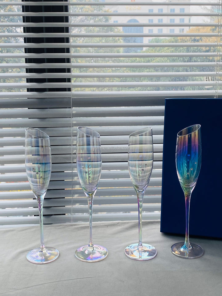 Luxury White Wine Glass Set Long Colorful for Glasses Electroplated Crystal Glass Dishwasher Safe Eco-Friendly Hotel Use