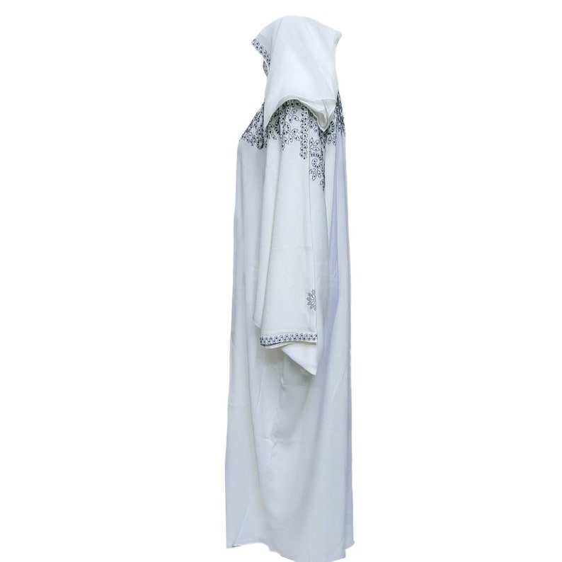 Luxury White Women's Batwing Abaya Farasha Jalabiya Satin Dress Party Style Natural Waistline High Neckline Floor-Length