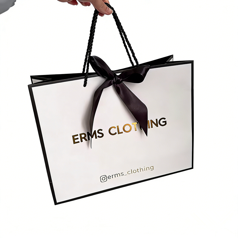 Luxury WhiteRibbon Shopping Paper Bag for Cosmetic Custom Logo Printed Quality Gift Packaging Bag