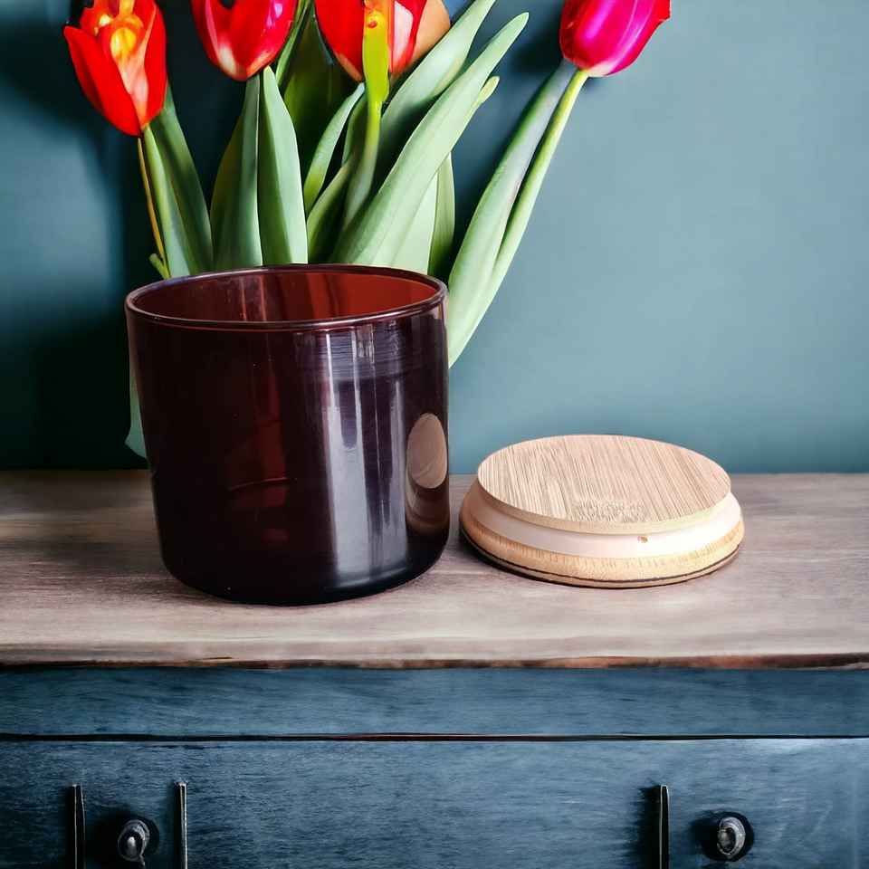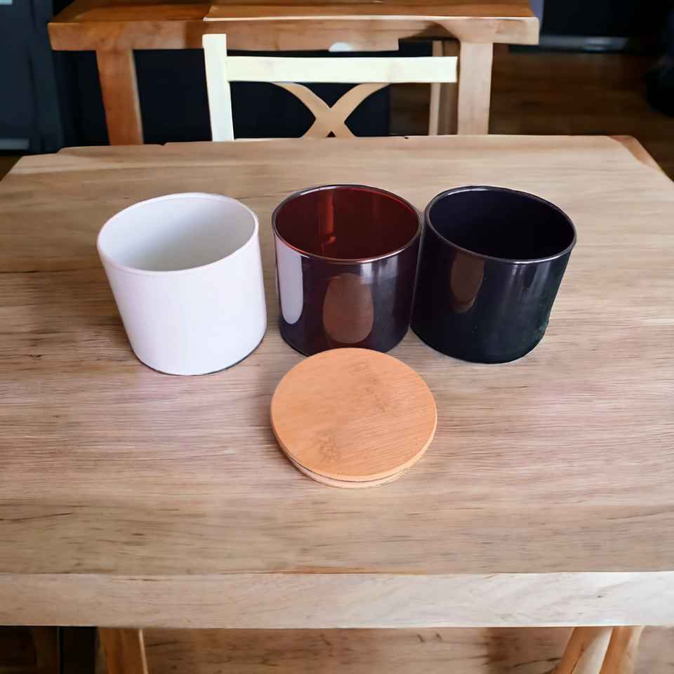 Luxury Wholesale Decorative Cylindrical Black White Amber Glossy Glass Candle Jar Vessel for Christmas Party Wedding Centerpiece