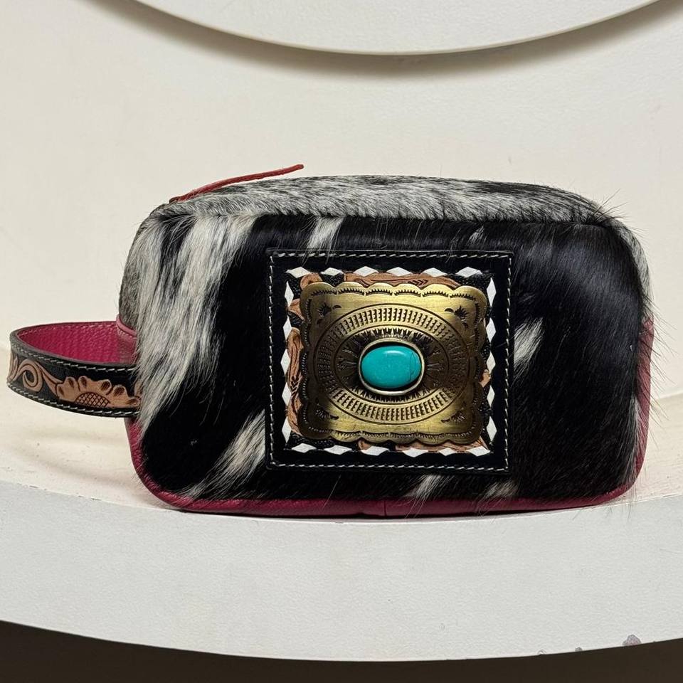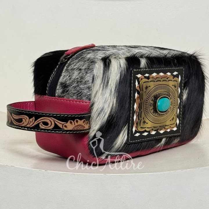Luxury Wholesale Women's Travel Cosmetic Toiletry Bag Hand-Tooled Cowhide Leather Large Capacity Professional Travel Organizer