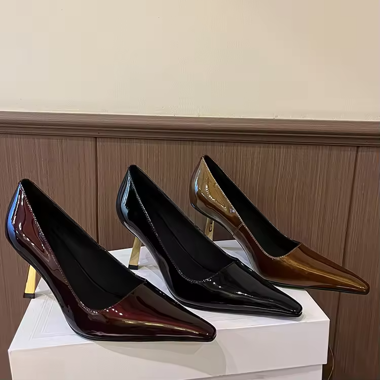 Luxury Wine Red Y-Style Handcrafted Metallic Heels 2026 Custom Sculptural Stiletto Pumps Nude Patent Summer Fashion Trend