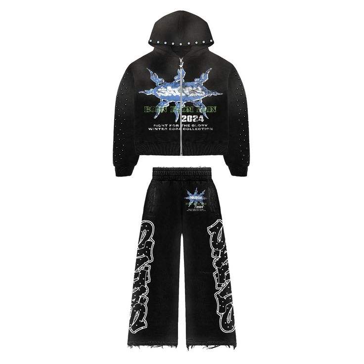 Luxury Winter Plus Size Streetwear Tracksuit with Rhinestones Zip Up Jacket Stripe Detail Wide Leg Pants Custom Brand Label