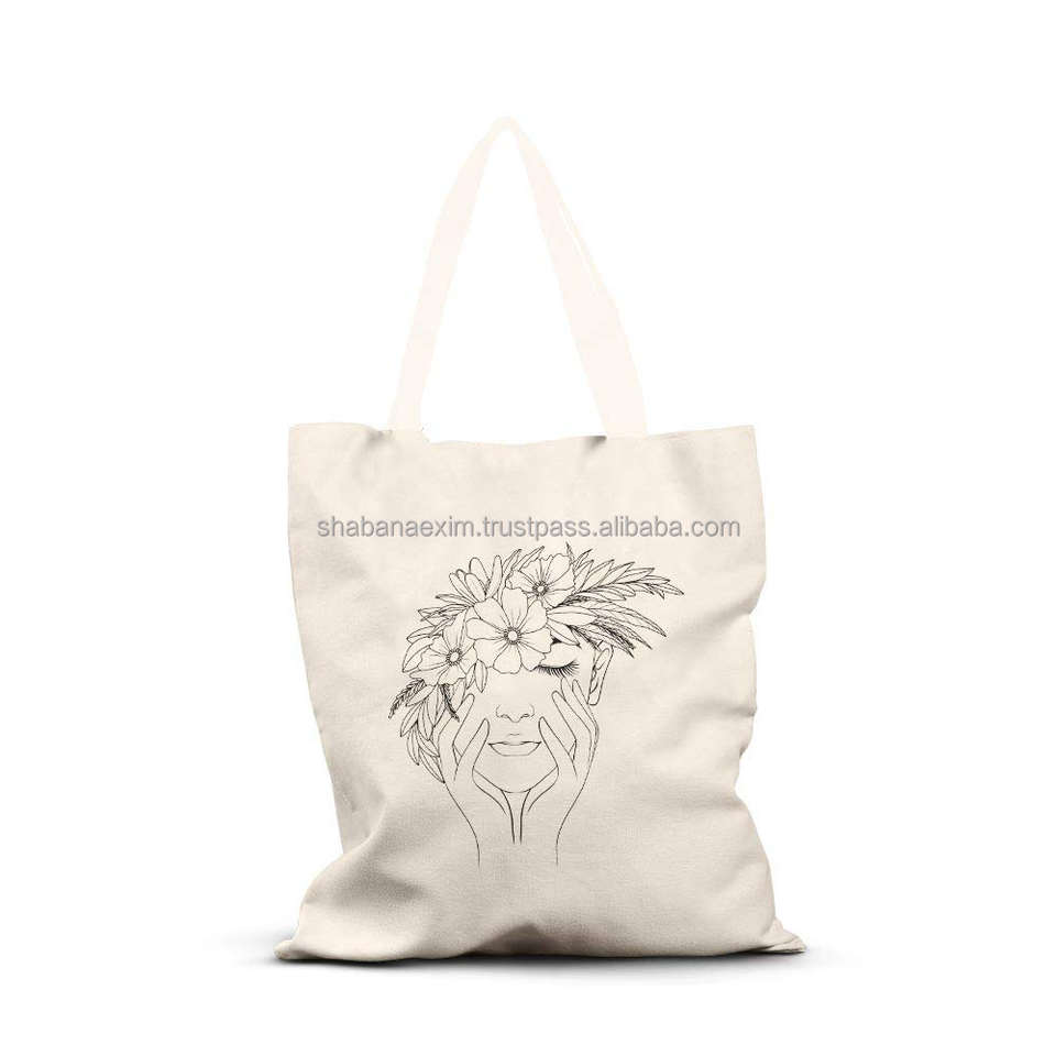 Luxury Woman Large Cotton Canvas Bag Hot Selling Casual Shopping Tote Bag Printed Cotton Canvas Bags on Cheap Price