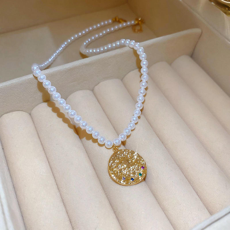 Luxury Women Party Wedding Evening Dinner Accessories Gold Plated Round Pendant Pearl Earrings Necklace Jewelry Set