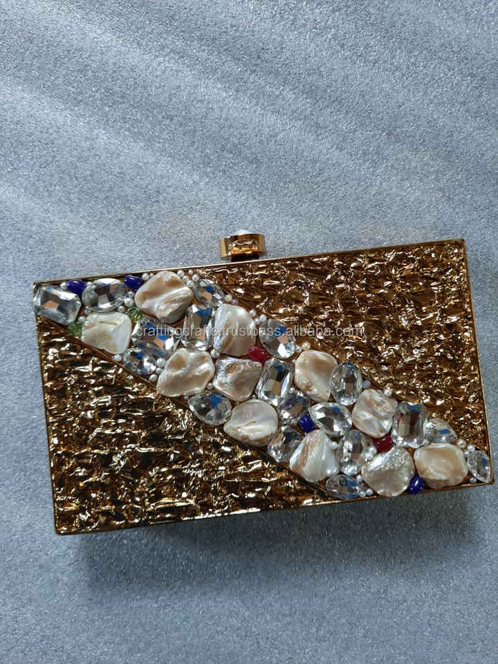 Luxury Women's Epoxy Resin Magnetic Closure Waterproof Evening Clutch Handbag Customizable Logo Diamond Flower Decorations for