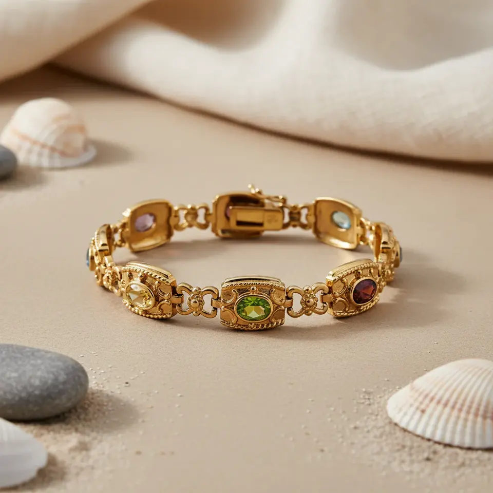 Luxury Women's Gold Plated Gemstone Beaded Bracelet Fashion Jewelry