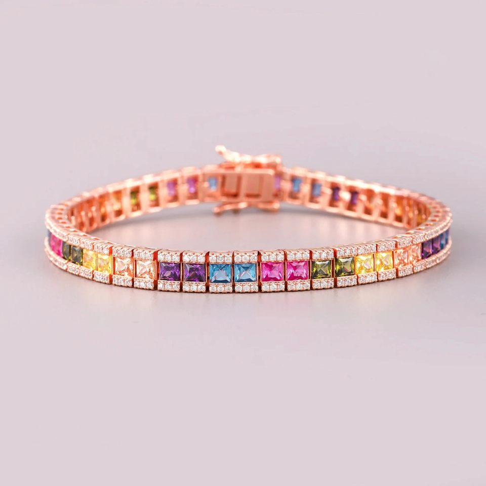 Luxury Women's High-quality IGI Certified Rose Gold Plated Diamond Vintage Adjustable Bracelet Rainbow Sapphire Raindrop Design