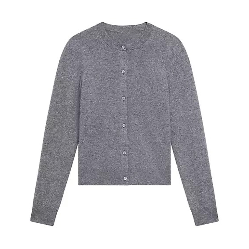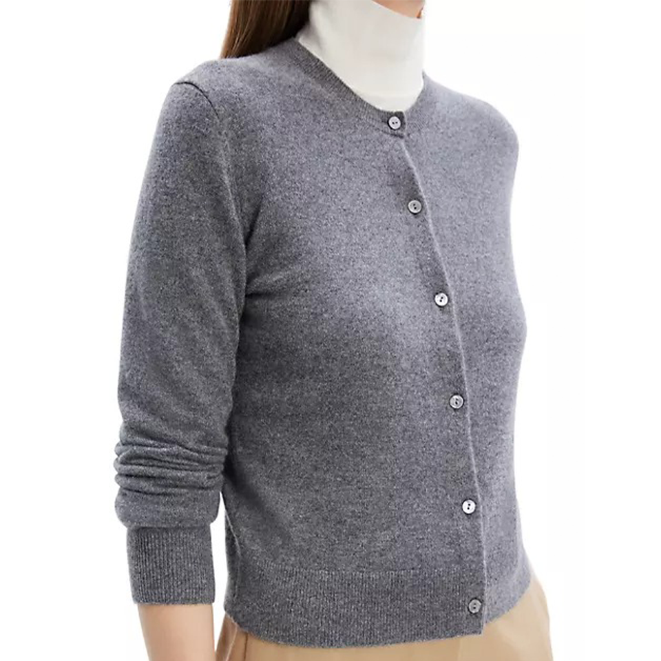 Luxury Women's Soft Grey Wool Blend Cardigan Elegant Korean Long Sleeve Knit Sweater Buttons Casual Winter Custom Wholesale