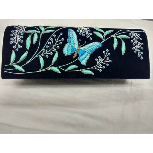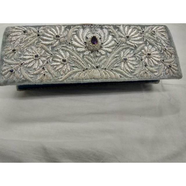 Luxury Women's Top Trendy Clutch Canvas Zipper Fashion-Forward Zari Embroidery Semi Gemstones Pearl Chain Beading Decoration