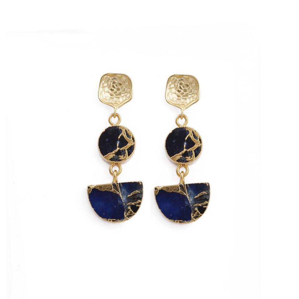 Luxury Women's Round Shape Stud Earrings in Blue Mohave Turquoise Gemstone Gold Electroplated Fashion Jewelry Studs