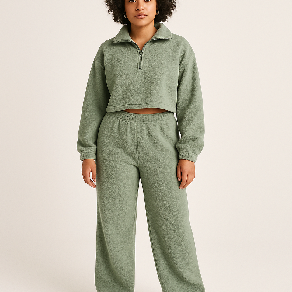 Luxury Womens Co-ord Set Crop Top Fleece Hoodie and Sweatpants Warm Fleece Outfit Private Label Streetwear