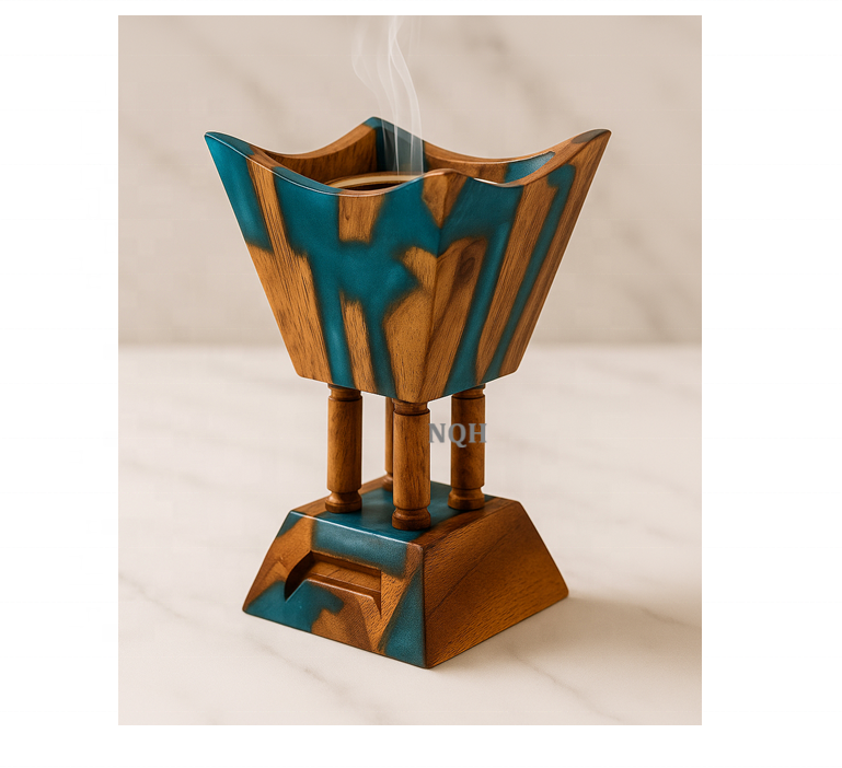 Luxury Acacia Wood Epoxy Resin Bakhoor Burner Handcrafted Modern Oud Incense Diffuser Fusion Mubkhar Home Fragrance Customizable