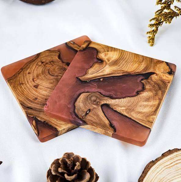 Luxury Wood Epoxy Resin Coasters with Glossy Finish for Elegant Living Room or Dining Table Decor