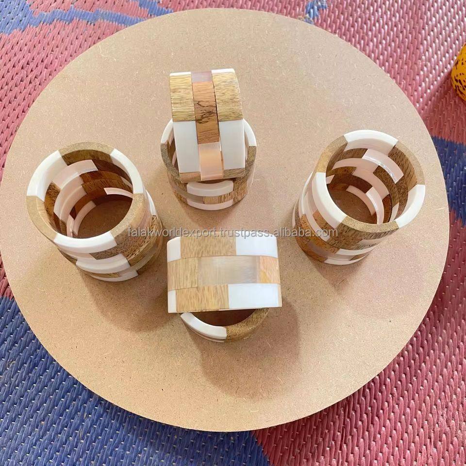 Luxury Wood Napkin Ring with Resin Stripe Decoration Handmade Ceramic Napkin Holder for Table Wedding Party for Kitchen Use