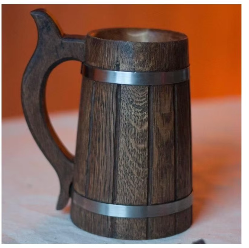 Luxury Wood Style Beer Mug Simulation Wooden Barrel Beer Mug Double Wall Drinking Mug With Handle Manufacturer Indian Factory