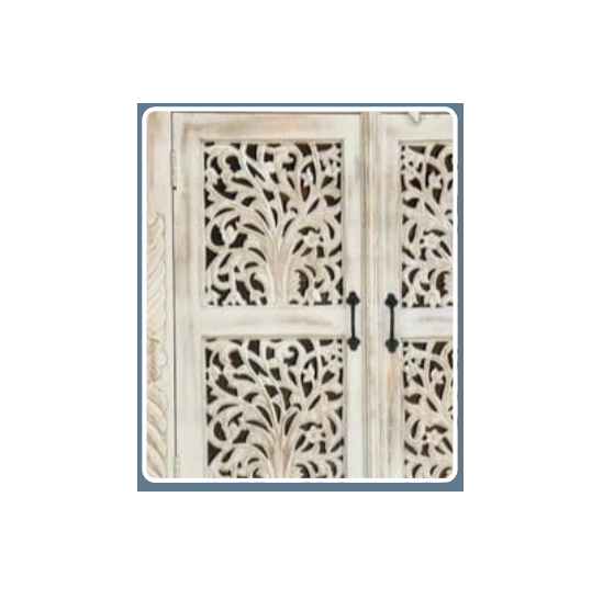 Luxury 2025 Amirah Furniture Handmade White Finish Wooden Carving Wardrobe 2 Doors Freestanding Storage Buffet for Bedroom