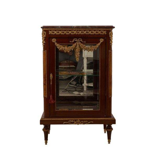Luxury Wooden Display Cabinet with Glass Door Brass Ornaments French Classic Style Side Cabinet with Marble Top