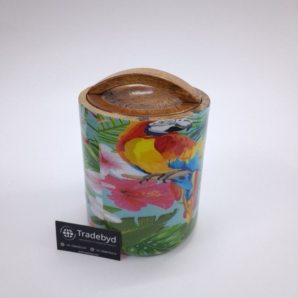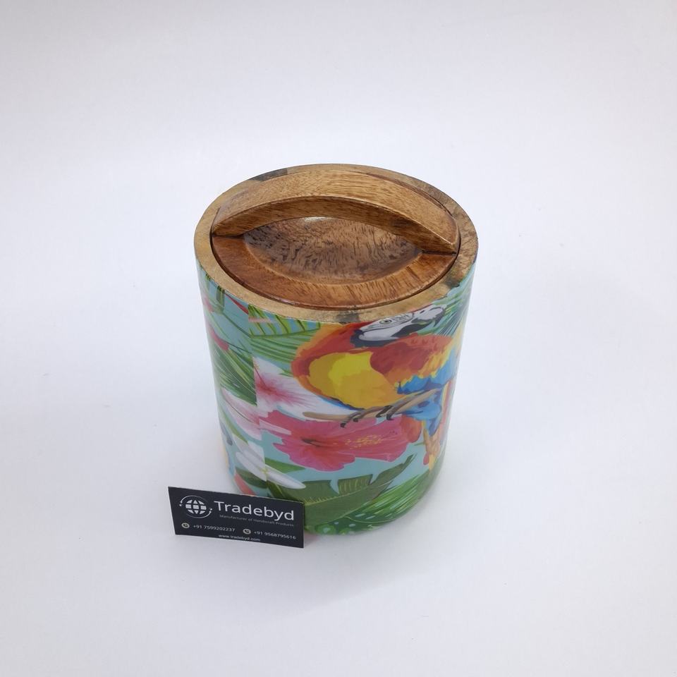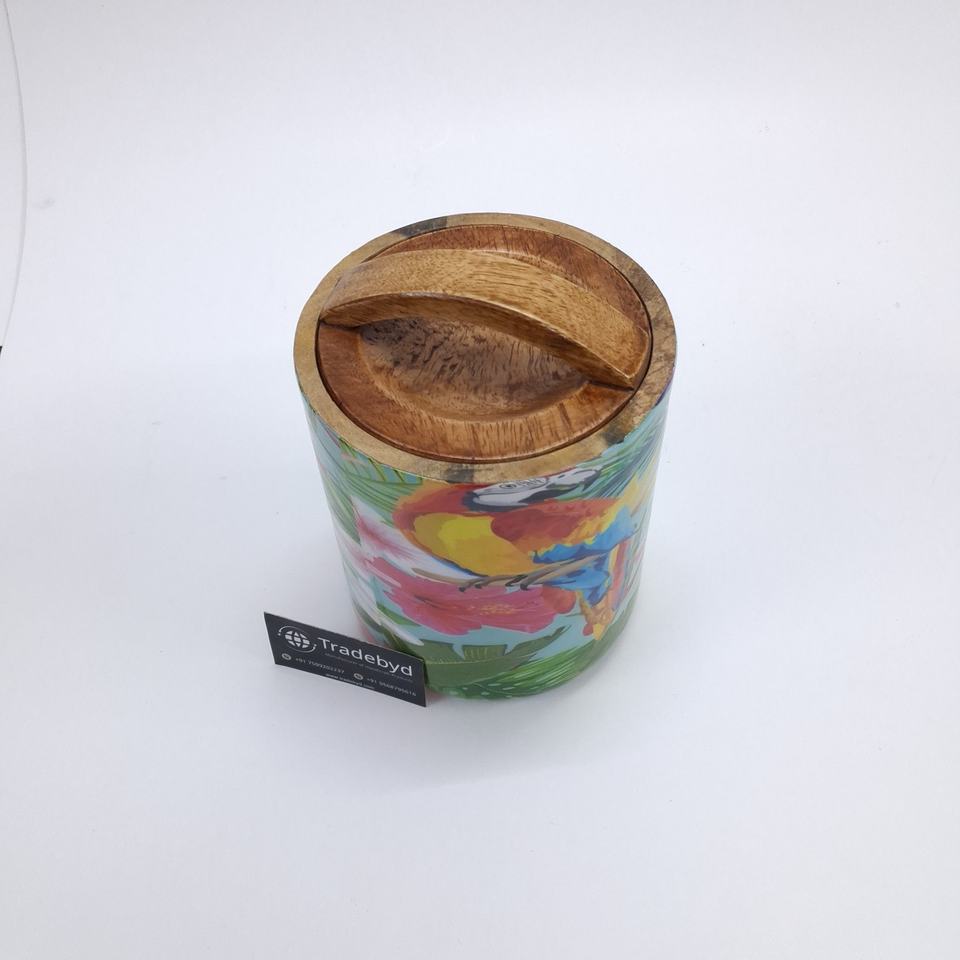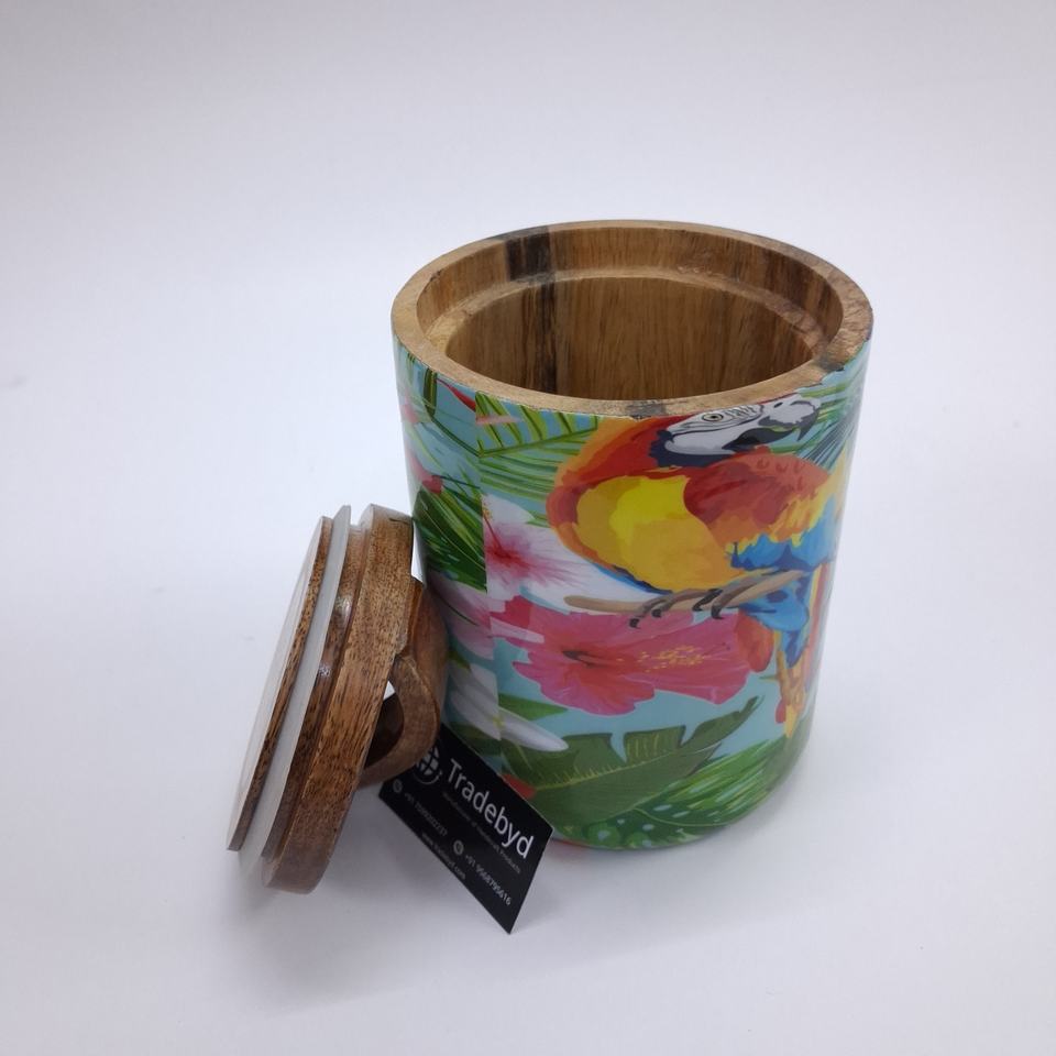 Luxury Wooden Enamel Dry Fruit Jar with Airtight Lid and Curved Handle for Snacks and Condiments by Tradebyd