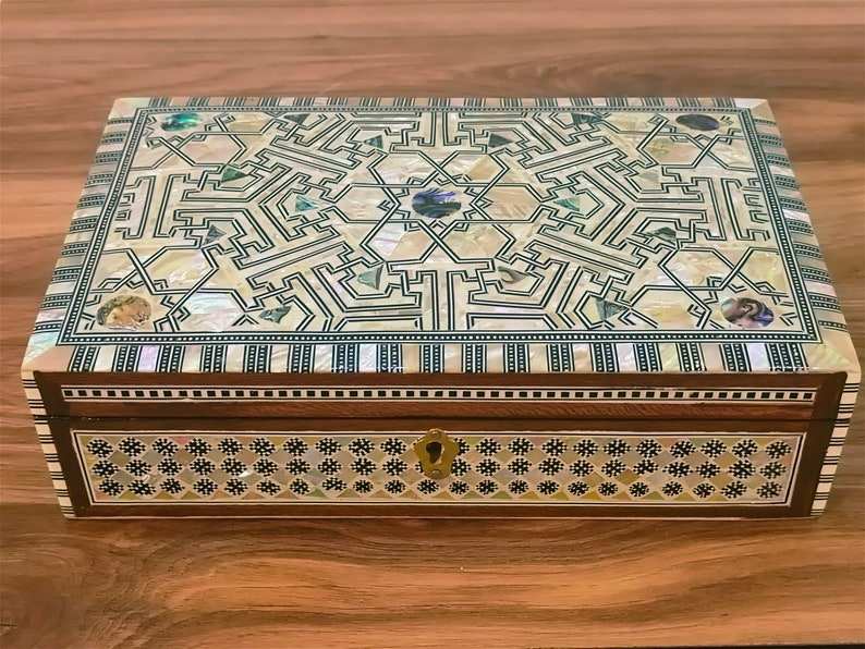 Luxury Wooden Jewelry Box with Mother of Pearl Inlay Handmade Craft Storage Case for Jewelry Accessories and Home Decor