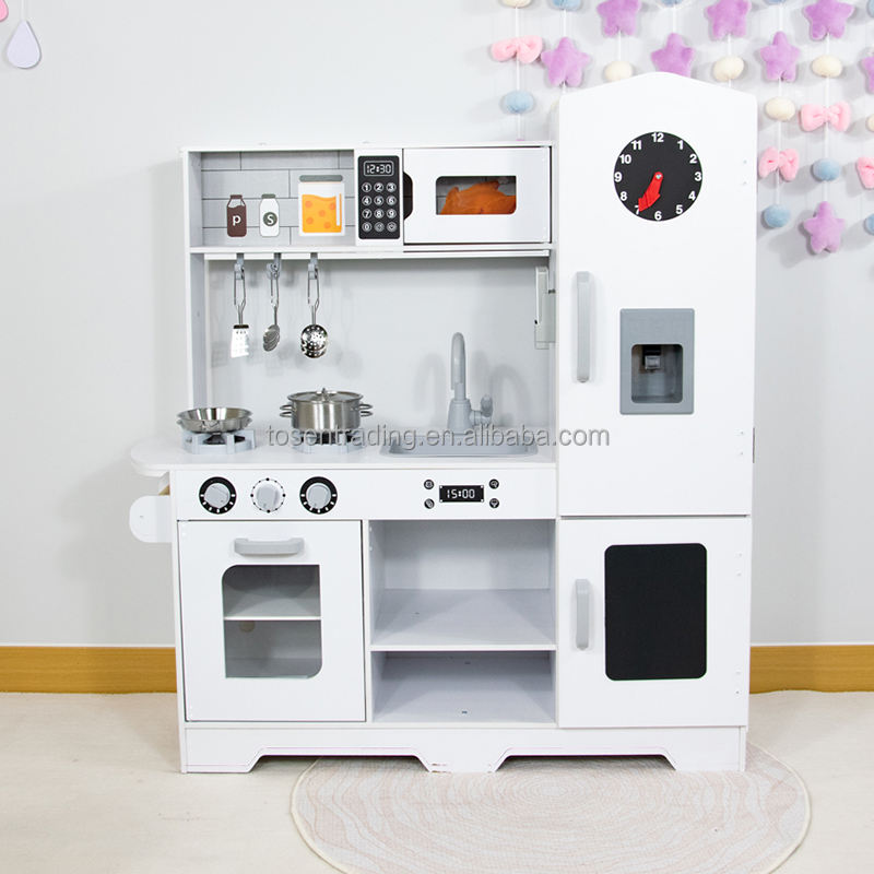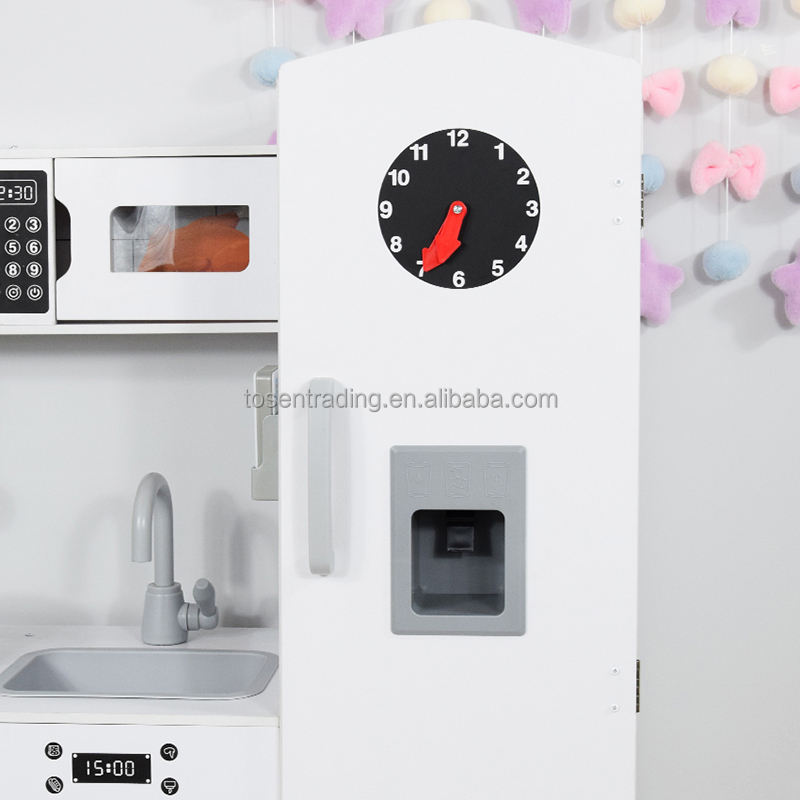 Luxury Wooden Kids Play Kitchen with Vintage Clock Fridge, Microwave, Stove & Sink, Premium Pretend Cooking Set
