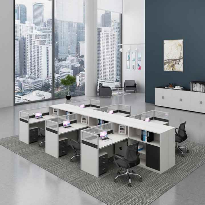 Luxury Wooden Office Furniture With Drawer Commercial Workstation Cubicle 1 2 3 4 6 Person Office Desk