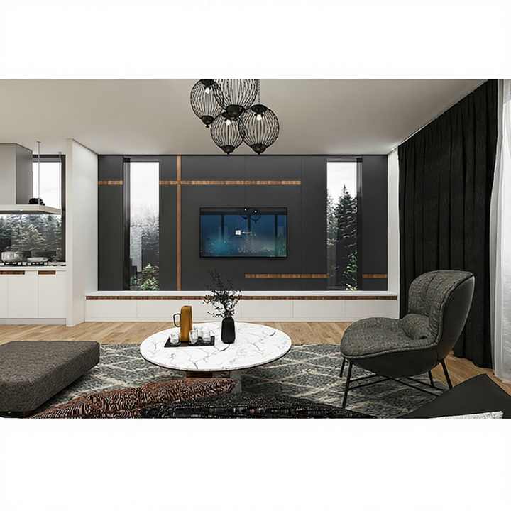 Luxury Wooden Panel TV Stand with Electric Hidden Doors for Living Room & Kitchen Contemporary Display Cabinet