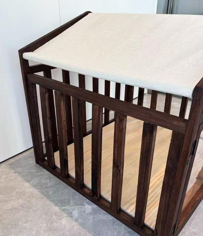 Luxury Wooden Pet Playpen & House - Indoor Dog Crate with Transparent Door, Removable Canopy, Pet Villa for Small-Medium Dogs