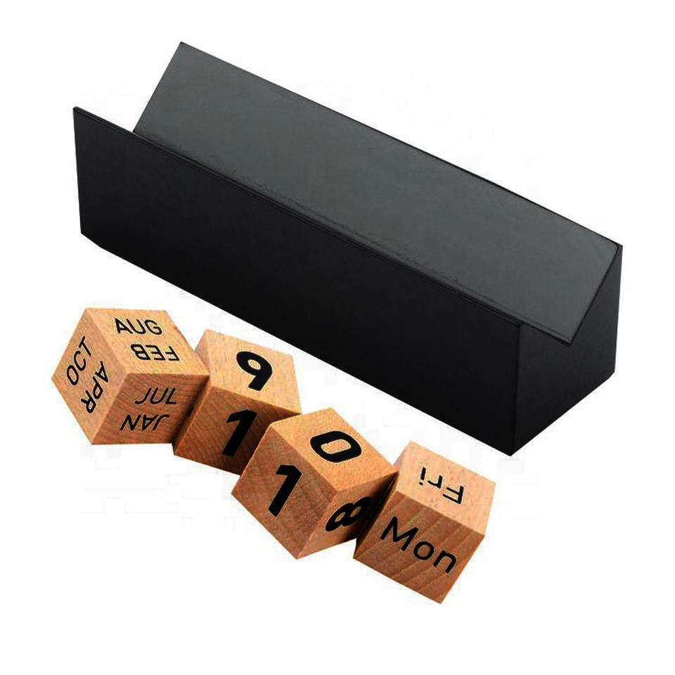 Luxury Wooden Retro Desktop Calendar Perpetual Block for Home Office School Desk Decor Wooden Cubes Calendar Month Date Display