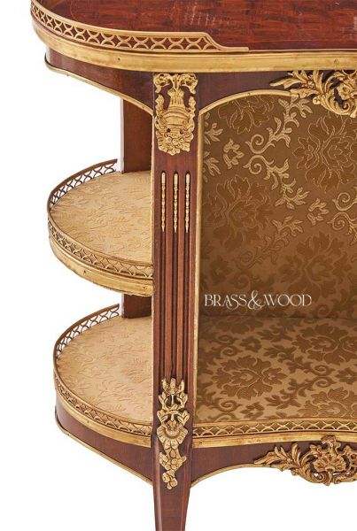 Luxury Wooden Side Table with Brass Details Double Shelf Design Elegant Inlay Finish and Classic European Style