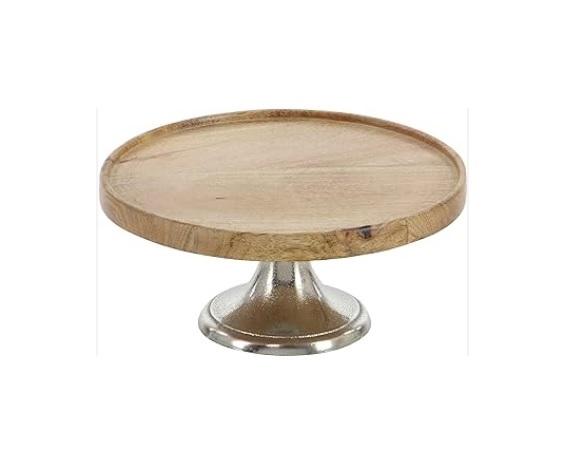 Luxury Wooden Single Tier Pillar Cake Stand Multipurpose Round Dessert Display for Birthday & Wedding Parties