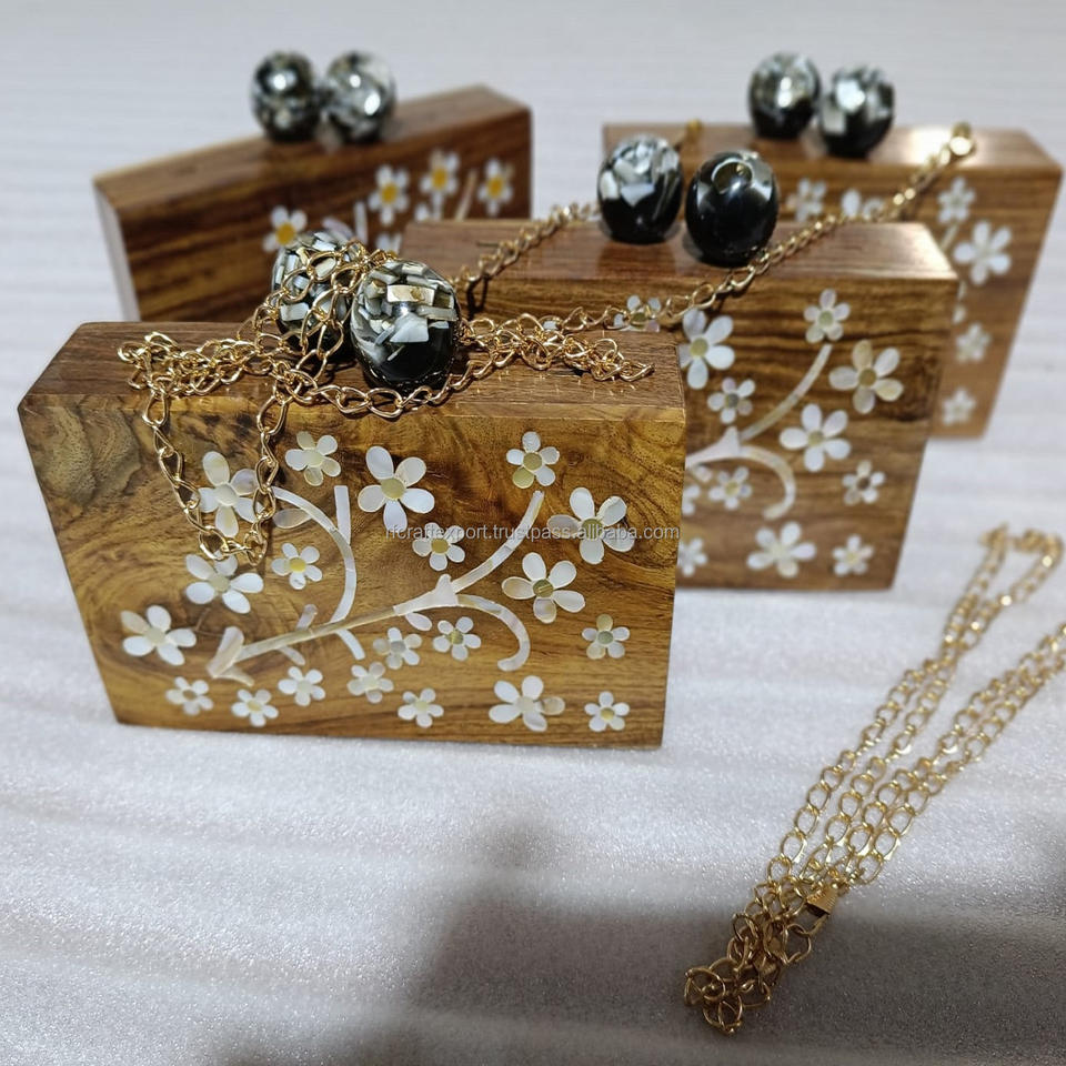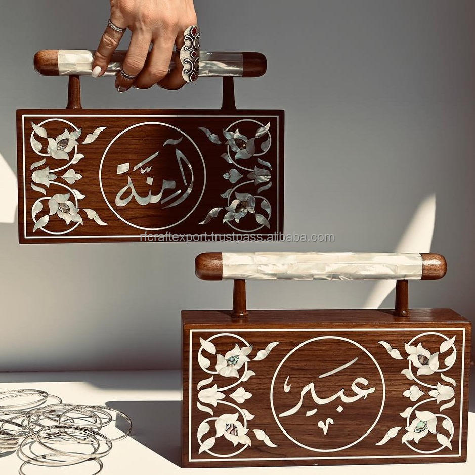 Luxury Arabic Wedding Gift Mother of Pearl Inlaid Wooden Evening Bag for Brides Wedding Clutch