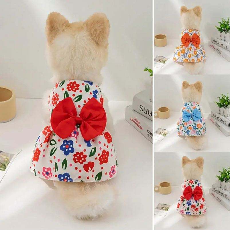 Luxury XS Size Puppy Cat Skirt Sweet Cute Dog Princess Dress Bowknot Button Birthday Christmas Parties Wedding Polyester