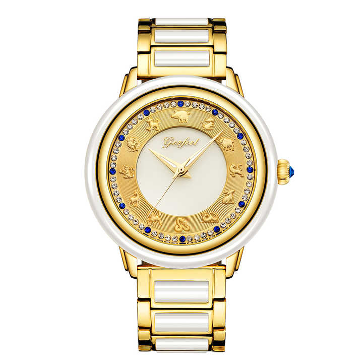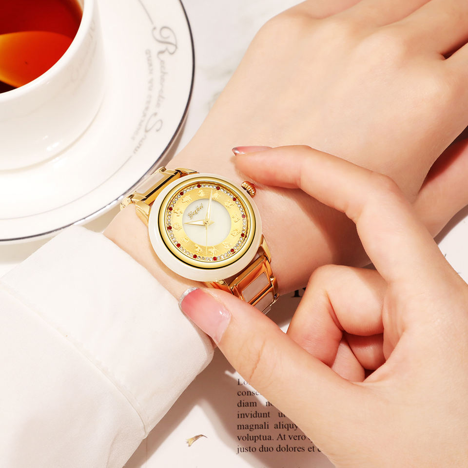 Luxury Zodiac Dial Hetian White Jade Watch SS Strap Waterproof Miyota Mechanical Watch for Men and Women