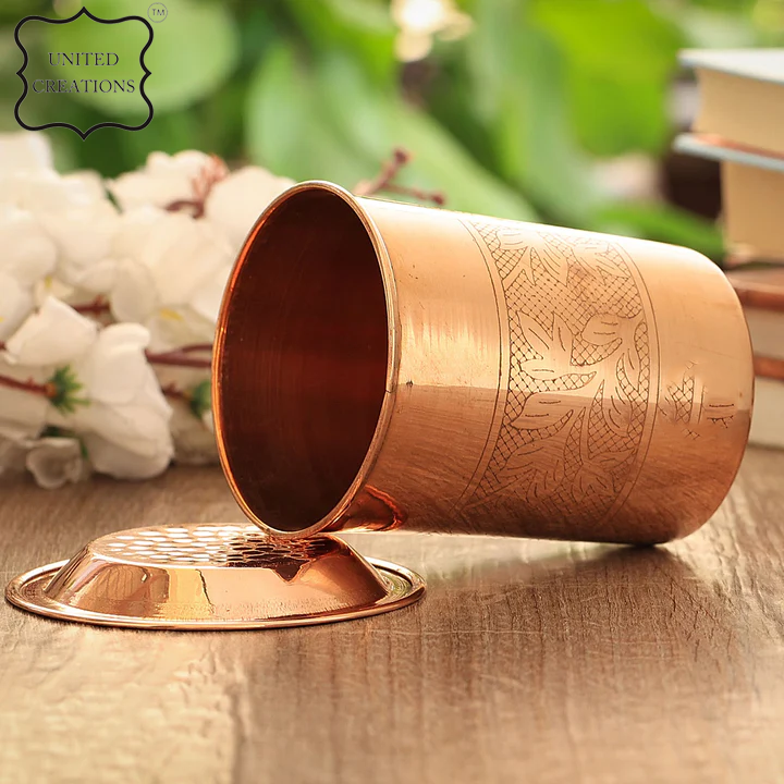 Luxury and Royal Hammered Copper Drinking Water Glass or Cup for Tabletop Home Used Handmade Latest Design Embossed Tumbler