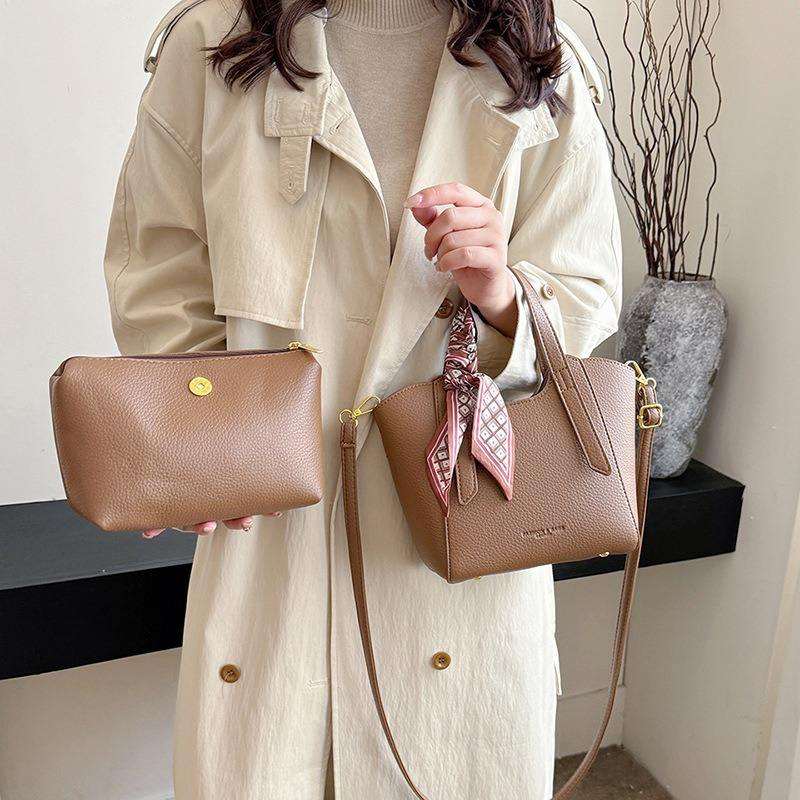 Luxury and high-quality women's PU bag with lychee pattern silk handbag