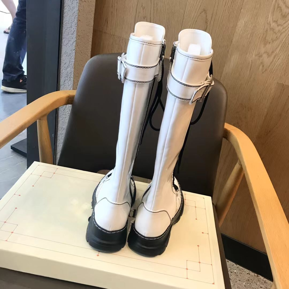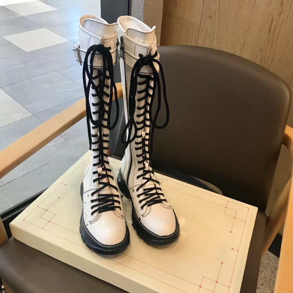 Luxury brand designer shoes Top Quality Winter Casual Shoes Genuine Leather Shoes Women White Lace up designer Boots Knee-high