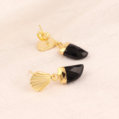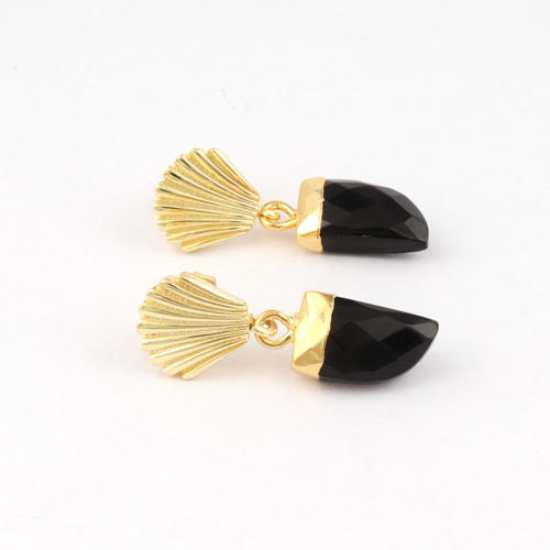 Luxury collection natural black onyx tiger nail shape earring brass gold plated leaf design gemstone drop dangle jewelry earring