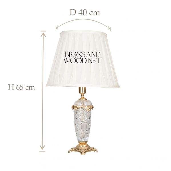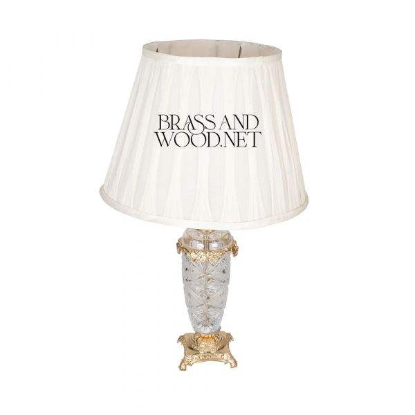 Luxury crystal table lamp with golden brass base and elegant fabric shade perfect for classic interiors and timeless upscale
